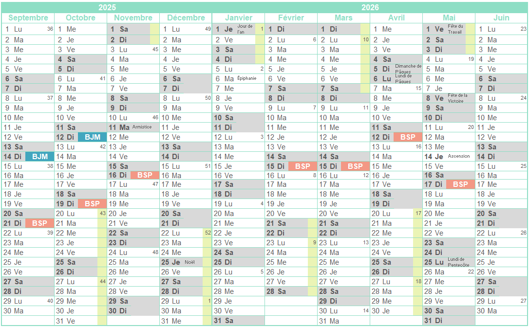 Calendrier des activités 2025–2026